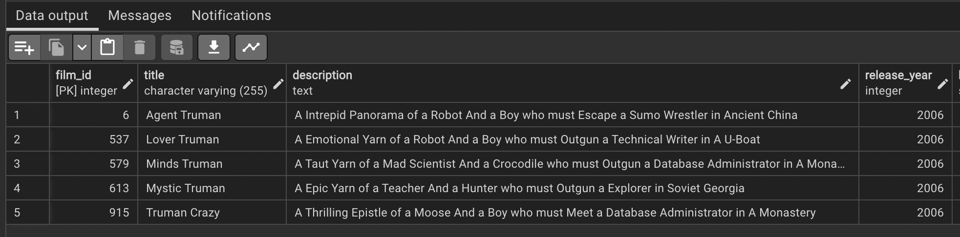 예시로, 영화 이름에 Truman이 들어간 영화를 찾는다고 생각해보자.